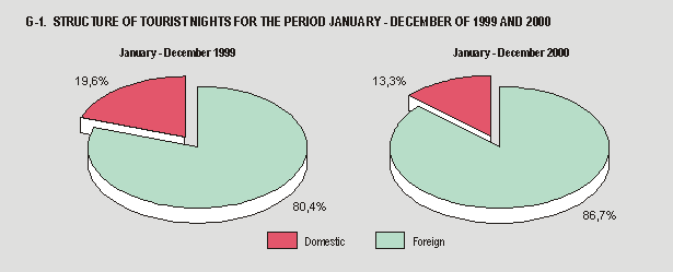 in the period January - December 1999 and 86.7% by foreign tourists, which is