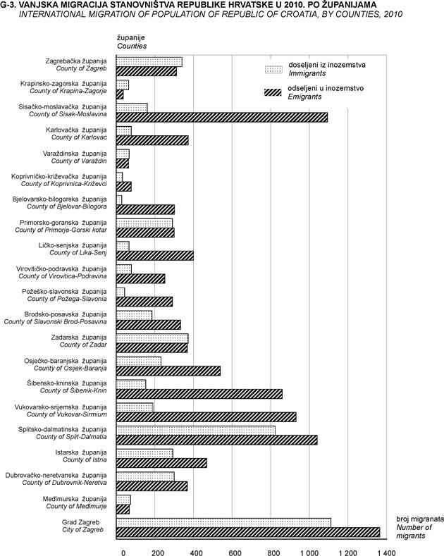 imao Grad Zagreb (22,3%) i Splitsko-dalmatinska županija (16,5%). Po broju odseljenih osoba iz Republike Hrvatske u inozemstvo u 2010. na prvom je mjestu