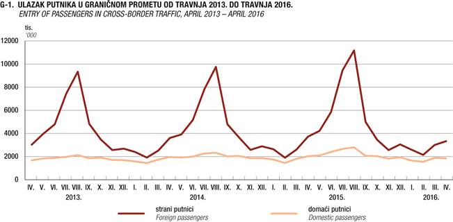 promet putnika na ulazu u Republiku Hrvatsku u travnju 2016. iznosi 5,1