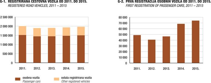 broj registriranih osobnih vozila u 2015. iznosio je 1 499 802, što je u