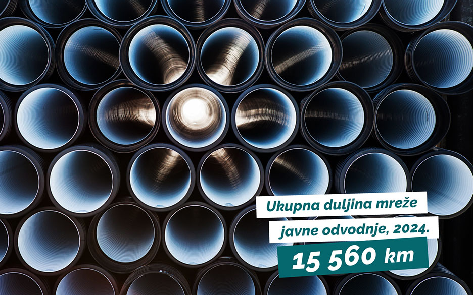 Mreža javne odvodnje u 2024. iznosila je 15 560 km, što je za 3,1% više u odnosu na 2023.