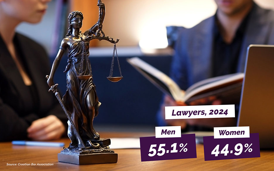 In 2024, there were no significant changes compared to the previous year concerning the total number of judges, state attorneys and their deputies, and their sex distribution. The only thing to point out is that the number of lawyers increased by 61, of which 52.5% were women.