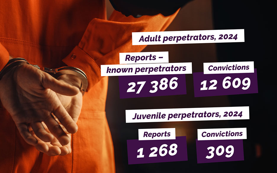 In 2024, a total of 1 268 juvenile perpetrators were reported, 337 of them were accused and 309 were convicted. Criminal offences against property were the most frequent offence, with 583 crime reports (46.0%) filled, followed by criminal offences against life and limb (12.7%) and personal freedom (11.2%).